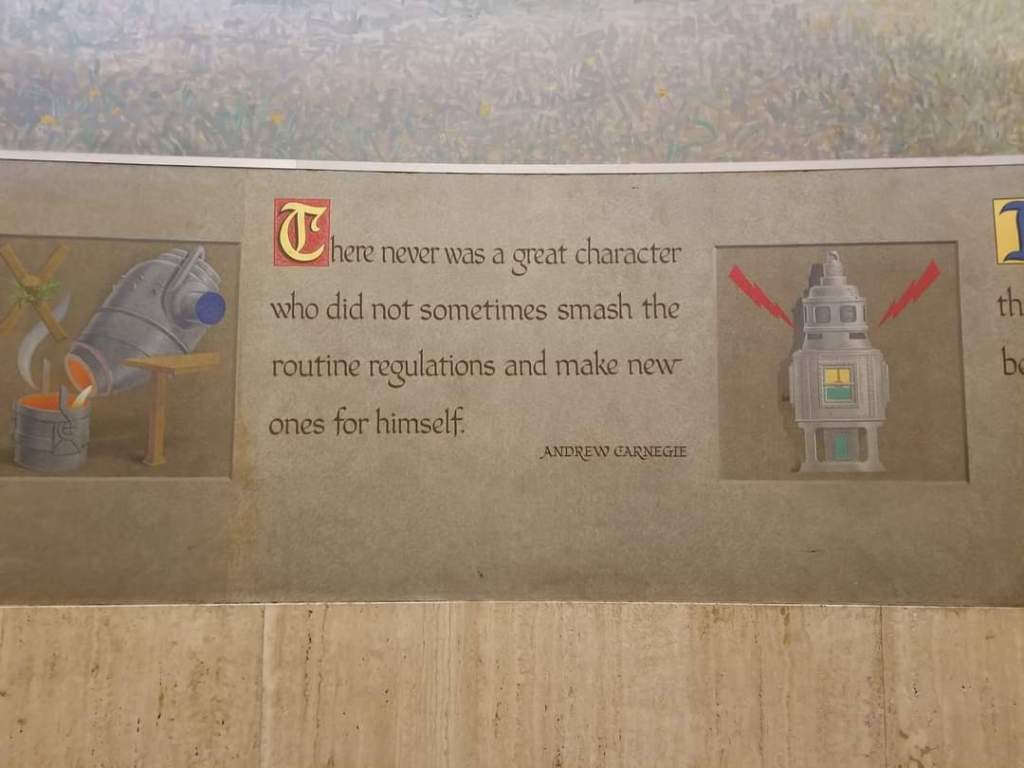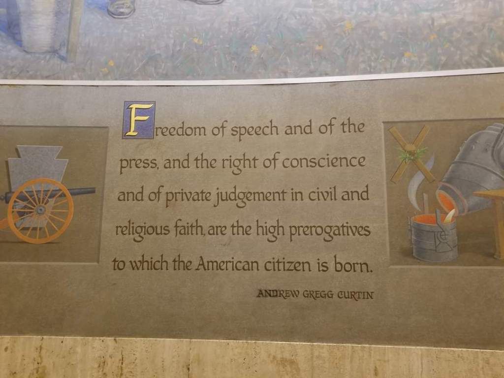 The main gallery walls are adorned with quotes from state leaders such as William Penn, Benjamin Franklin, and Andrew Carnegie.